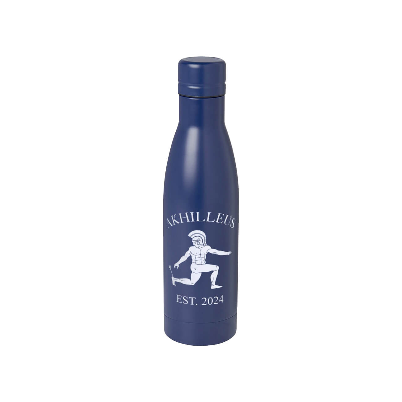 Kahvia, vettä tai teetä? – Kyllä kiitos! Nyt voit nauttia lempijuomaasi ekologisesti valmistetusta juomapullosta. Kierrätetystä ruostumattomasta teräksestä valmistettu juomapullo pitää suosikkijuomasi kylmänä tai kuumana. Tyylikkään loppusilauksen takaa Akhilleus Fysioterapian logo.