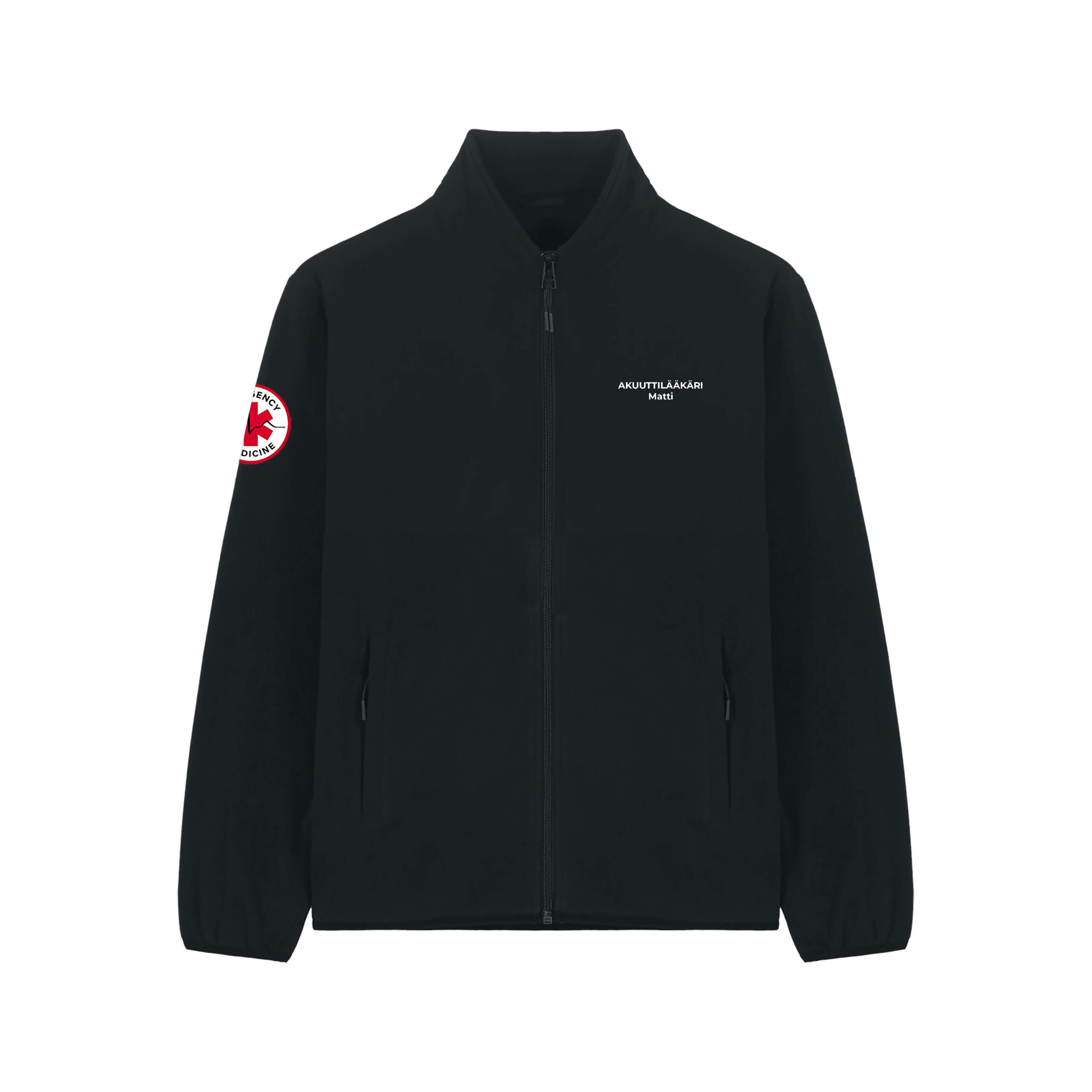 Tyylikäs ja monikäyttöinen unisex-fleecetakki, joka sopii erinomaisesti suomalaisiin sääoloihin. Takin hihat ja alaosa on valmistettu Polar-fleece kankaasta ja yläosa puolestaan softshell-kankaasta. Ekologiset materiaalit varmistavat huippulaadukkaan lopputuloksen. Oikeassa hihassa on brodeerattu logo ja vasempaan rintaan voit valita joko AKUUTTILÄÄKÄRI tai AKUUTTILÄÄKÄRI EVL -brodeerauksen sekä halutessasi oman nimikoinnin.