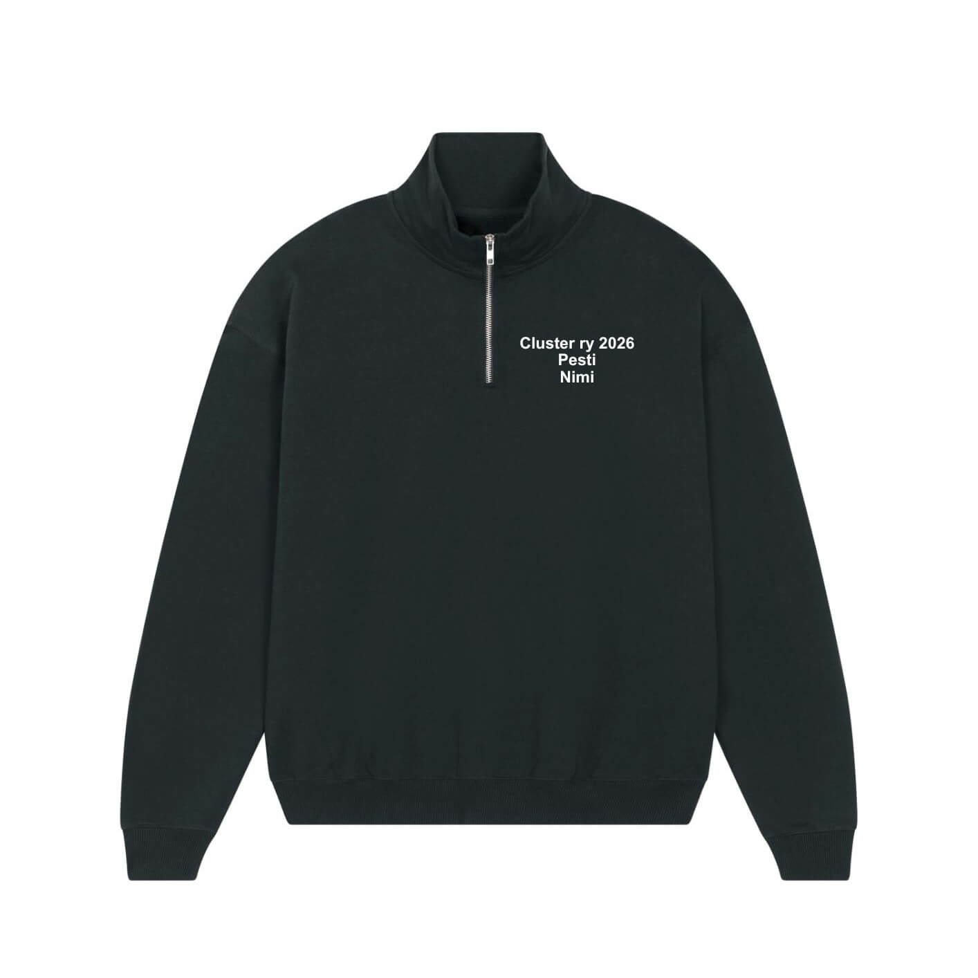 Moderni versio quarter zip -collegepaidasta, oversize mitoitettu klassikko. Sopii niin arkisiin tilanteisiin kuin hieman virallisempaankin lookkiin. College on valmistettu vastuullisesti 100% luomupuuvillasta ja on tuntumaltaan jämäkkää 400g/m2 dry freel -kangasta. Cluster ry:n hallituscollegessa on logobrodeeraukset etu- ja selkäpuolella. Lisäksi etupuolelle tulee brodeerattu nimikointi sekä hallituspesti. Kirjoita nimi ja pesti niille varattuihin kenttiin.