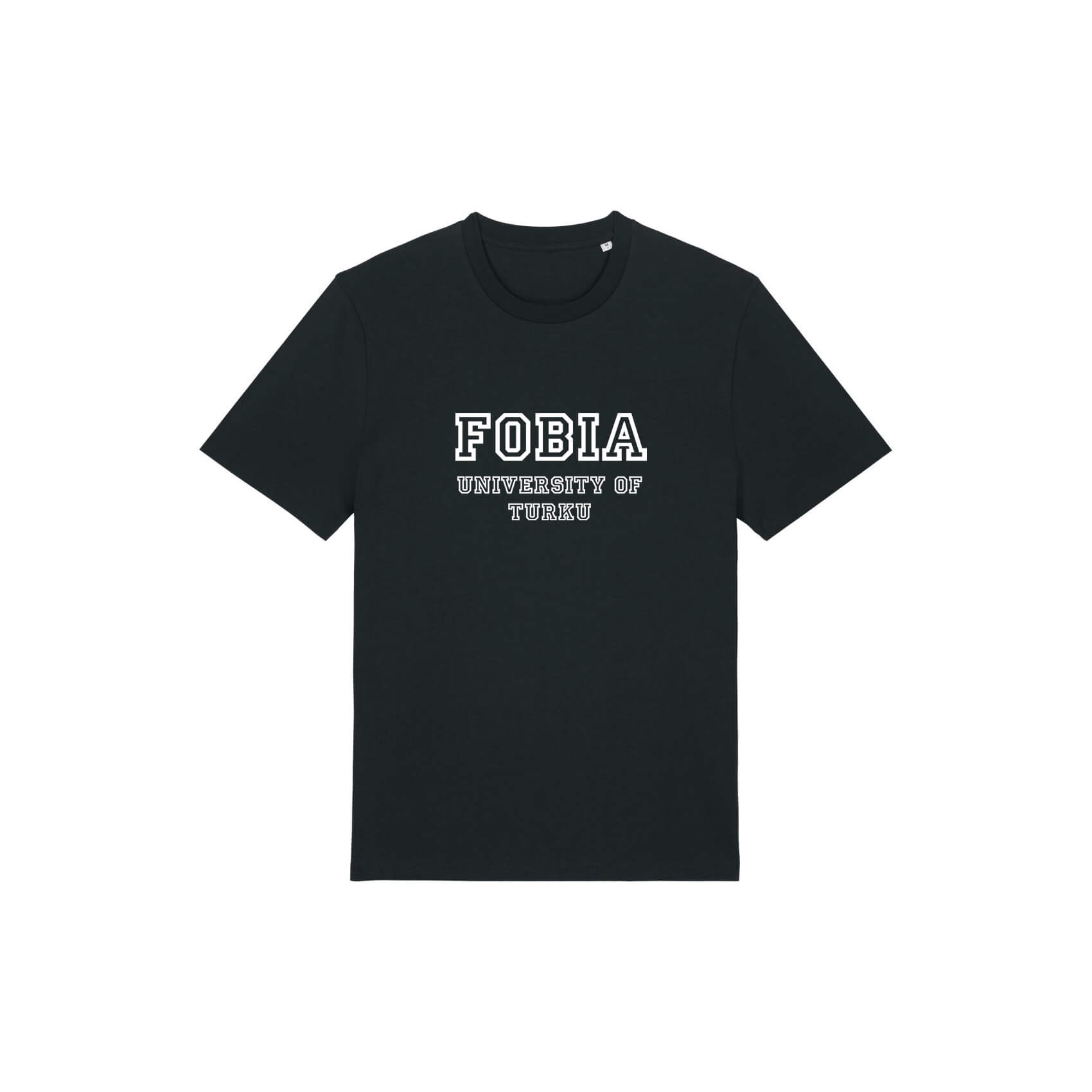 Luomupuuvillasta valmistettu ekologinen t-paita koristeltuna Fobia ry:n logopainatuksella. Painatus löytyy paidan rinnasta. T-paidan hihat ja reunat on viimeistelty tuplatikkauksella.
