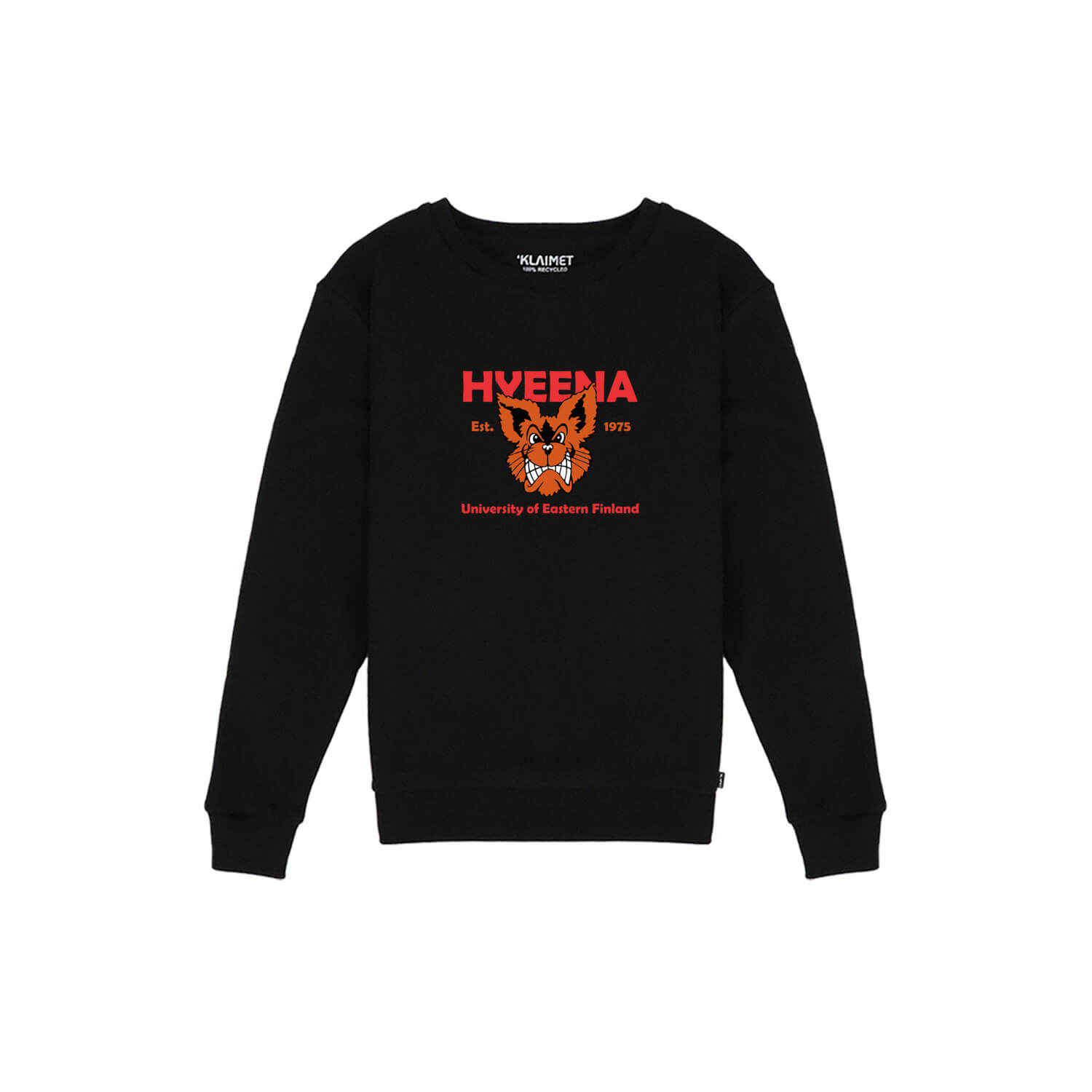 Ympäristöystävällinen ykkösvalinta! Tyylikäs ja istuva unisex ’Klaimet® collegepaita, jonka rinnassa brodeerattu Hyeena ry:n logo. College on valmistettu 100% tekstiili- ja muovijätteestä sekä tuotettu kokonaan EU-alueella.