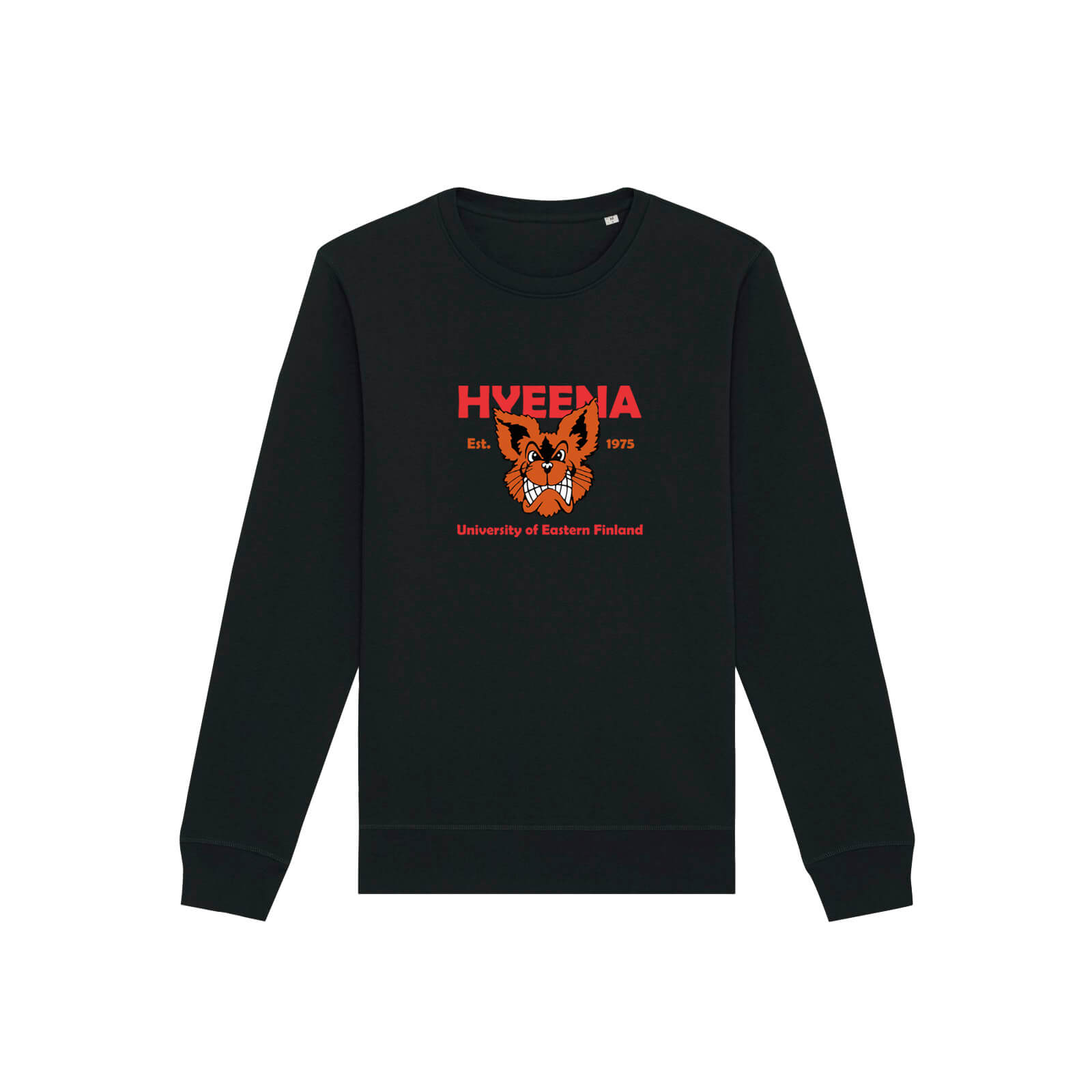 Tässä collegepaidassa yhdistyy sekä ekologisuus että mukavuus. Tyylikkään lopputuloksen viimeistelee Hyeena ry:n logo brodeerauksella paidan etupuolella.
