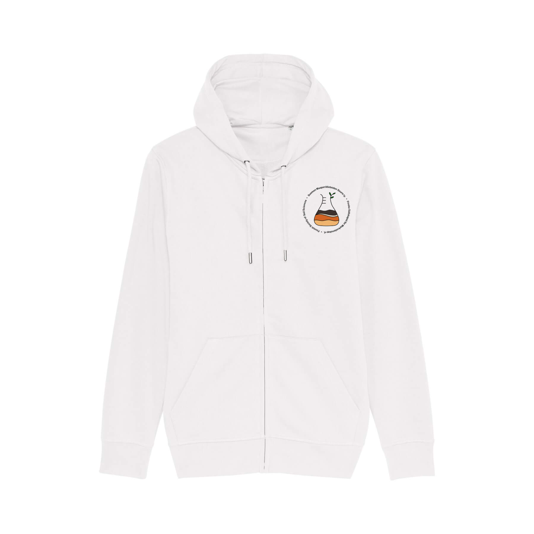 Ekologisesti ja kestävästi valmistettu vetoketjuhuppari. Tyylikkään lopputuloksen takaa hupparin rinnasta löytyvä Suomen Maaperätieteiden Seuran logo.