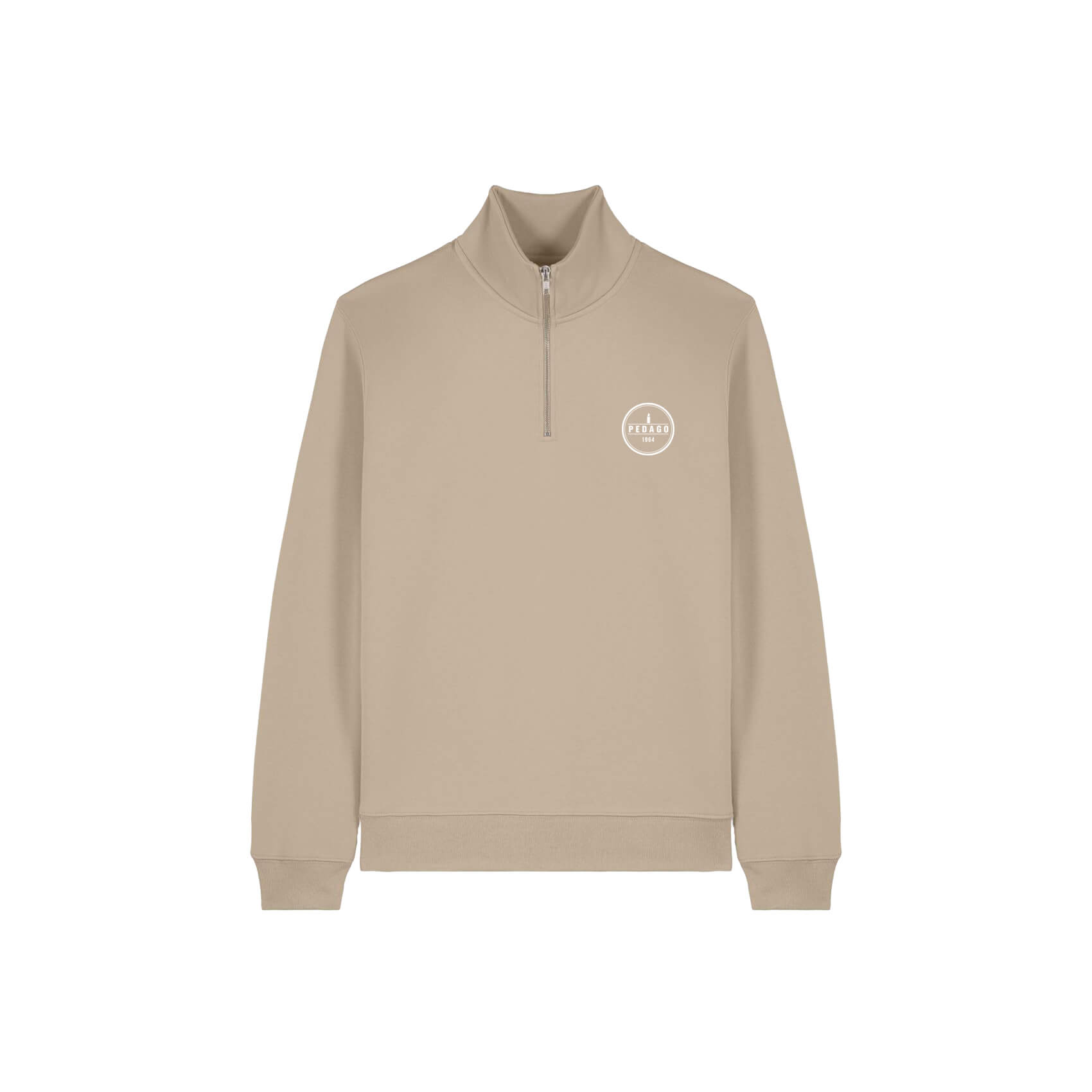 Klassinen quarter zip -collegepaita. Sopii niin arkisiin tilanteisiin kuin hieman virallisempaankin lookkiin. Valmistettu vastuullisesti luomupuuvillasta ja kierrätetystä polyesterista. Lisäksi rinnassa on Pedago ry:n brodeerattu logo.